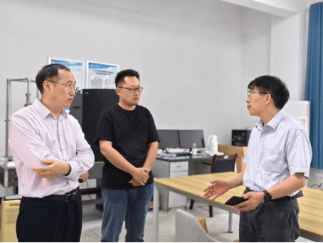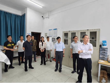 在实验室,负责人详细介绍了实验室的科研方向、学术成果及设备资源,考察一行对光电材料性能优化与新能源技术应用前景有了更深了解。