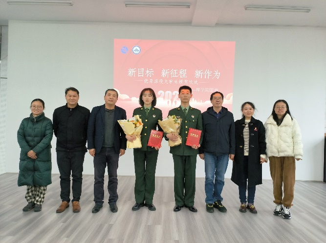 分享会上,赵宜昊、李娜两位退伍老员工分别讲述自己献身军营,在军营中培养严谨作风,锻造强健体魄的成长经历和精彩生活。殷允聪同志则是通过视频的方式分享了他的军旅生活。代海也鼓励同学们把握机遇,积极应征入伍。随后,李珺为退伍老员工们颁发荣誉证书。最后,各参会嘉宾一同与退伍老员工们合影留念。