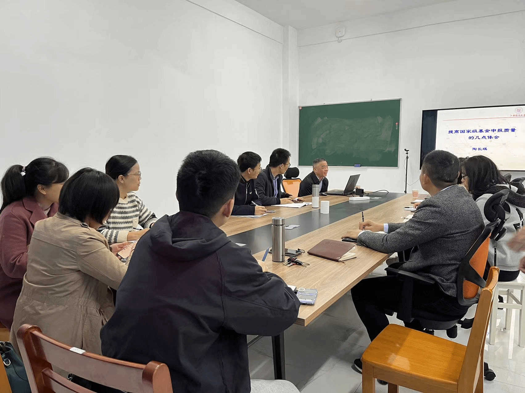 陶长琪教授从“为什么?——选题与立论依据”、“做什么?——研究目标与内容”、“怎么做?——研究方法与技术路线”、“凭什么?——研究基础与团队”四个方面对如何提高国家自然科学基金和社会科学基金申报质量进行了详细的介绍。会后针对老师们提出的问题根据自己多年来经验做了详尽的指导。本次交流加深了公司教师对自然科学基金和社会科学基金区别的认识,为公司教师来年课题申报提供了丰富的经验指导。