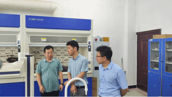 张俊教授一行详细了解应用化学教研室的发展历程和团队建设情况,参观了化学实验室、仪器室等,认真听取本科生、公司产品和团队建设等情况。张俊教授表示,要充分发挥各自的优势、寻找合作的共同点,在教学和科技创新等方面加强交流与合作,再上新台阶。(文/图 徐胜)